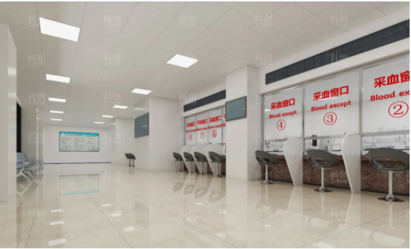 (4)采血區(qū)應(yīng)單獨(dú)成一區(qū),采血窗口的長(zhǎng)度不宜小于1.2m,寬度45-60cm為宜,采血窗口的數(shù)量應(yīng)參考日平均門診數(shù)量確定,并適當(dāng)考慮將來(lái)發(fā)展需要。