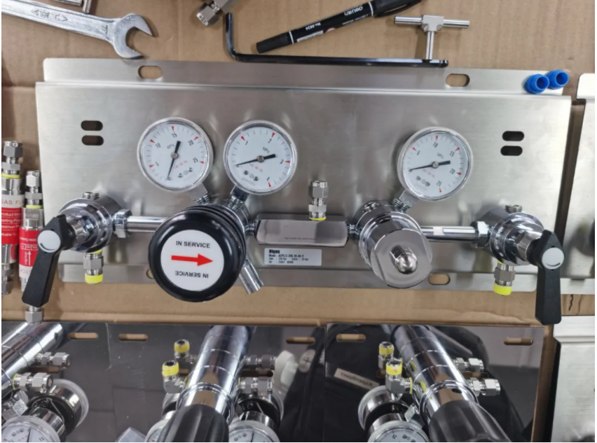 (1)管道、球閥、卡套和三通等為316L不銹鋼減壓器為高純氣體減壓器(不銹鋼閥芯),高壓軟管(連接鋼瓶和匯流排)為不銹鋼波紋管,在高壓軟管的進(jìn)氣端,配置單向閥,可以防止更換鋼瓶時(shí),軟管內(nèi)的氣體外泄,同時(shí)避免外界的空氣混入氣路之中。