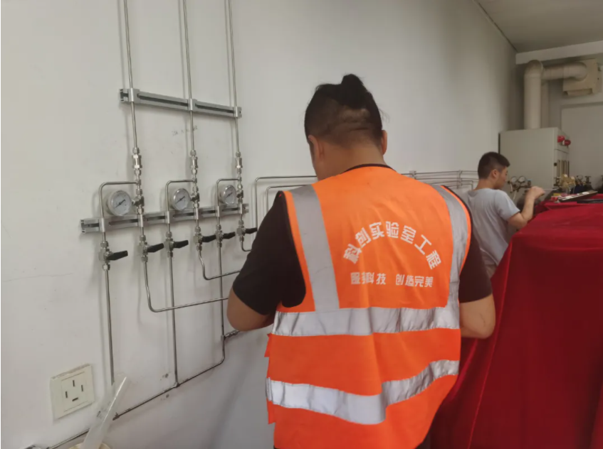 ①部件數(shù)量是否符合合同中數(shù)量的約定。②所有連接點(diǎn)是否安全固定。③管道布局是否合理、美觀。④氣體標(biāo)頭是否粘貼得正確、美觀。⑤管道連接是否正確。⑥整個(gè)管路安裝完畢后,對(duì)整個(gè)系統(tǒng)做壓力測(cè)試。參照《工業(yè)金屬管道工程施工及驗(yàn)收規(guī)范》,管路系統(tǒng)在保壓24小時(shí)后,壓力無下降為合格。(實(shí)驗(yàn)室氣路系統(tǒng))