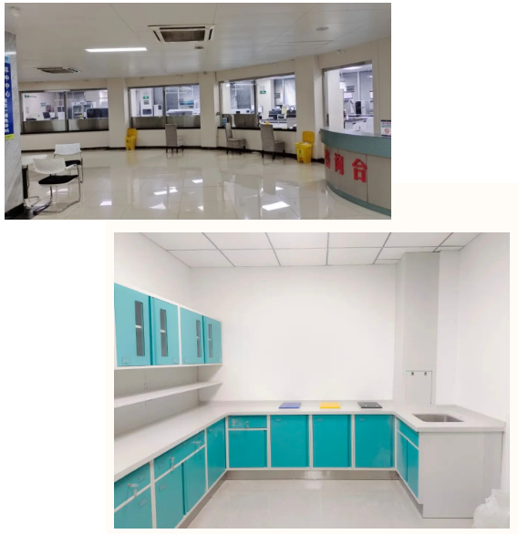 6.發(fā)血區(qū)實驗室家具:發(fā)血窗口、實驗臺、更衣柜、文件柜等。
