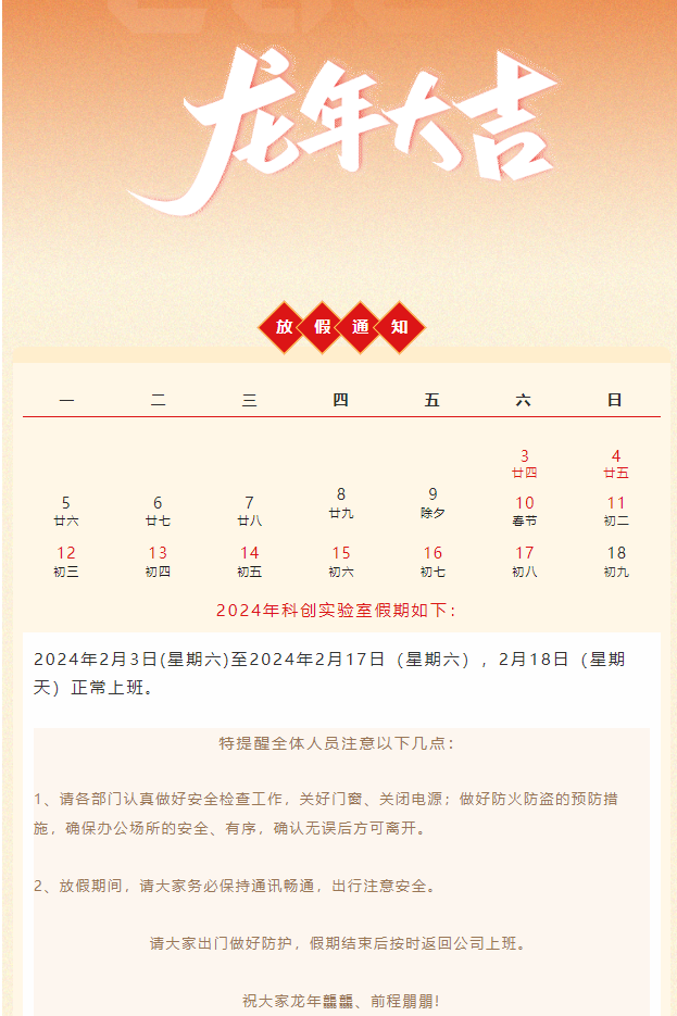 科創(chuàng)實(shí)驗(yàn)室2024年春節(jié)放假通知 上一篇:實(shí)驗(yàn)室廢棄物污染現(xiàn)狀及防治措施 下一篇:2024年開(kāi)工大吉,共啟新征程!