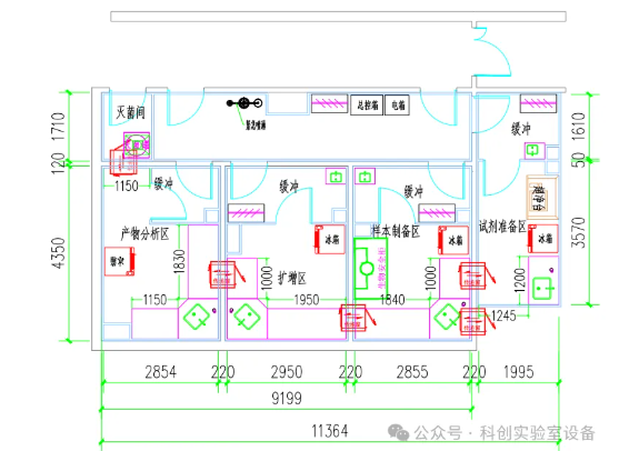 PCR實驗室改造時,空氣循環(huán)系統對實驗環(huán)境的安全和準確性至關重要。緩沖室和PCR擴增區(qū)的排風機應設計為向外排風,同時外墻和各個門口設有不同風量和可調節(jié)的回風口。通過回風口,空氣可以在系統內有效地進行循環(huán),從而保證室內空氣潔凈并防止外部污染。